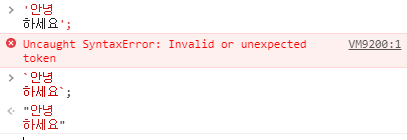 템플릿 리터럴은 홑 , 쌍따옴표가이닌 ` 을 사용해서 문자열로 만들어준다.